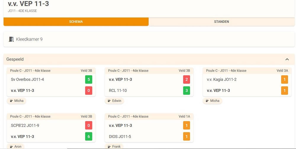 Voor een aantal spelers was dit een weerzien echter in andere kleuren dan zij voorheen gewend waren. Een aantal spelers van de VEP JO10 lichting hadden zich aangemeld als JO11 team om zo alvast te wennen aan het grotere veld.